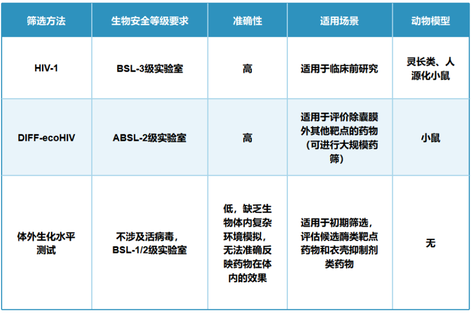 表1.DIFF-ecoHIV抗艾药物筛选方法与市面其他筛选方式的比较